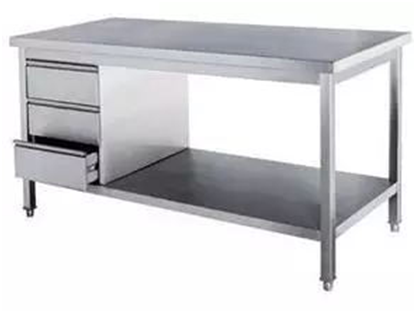 在廚房中會(huì)大量用到不銹鋼工作臺(tái),因?yàn)閺N房空間緊張,通常都會(huì)選用兩層或者更多層的工作臺(tái),除了上面的工作面以外,下面還能夠擱置一些桶、盆、框等物件。